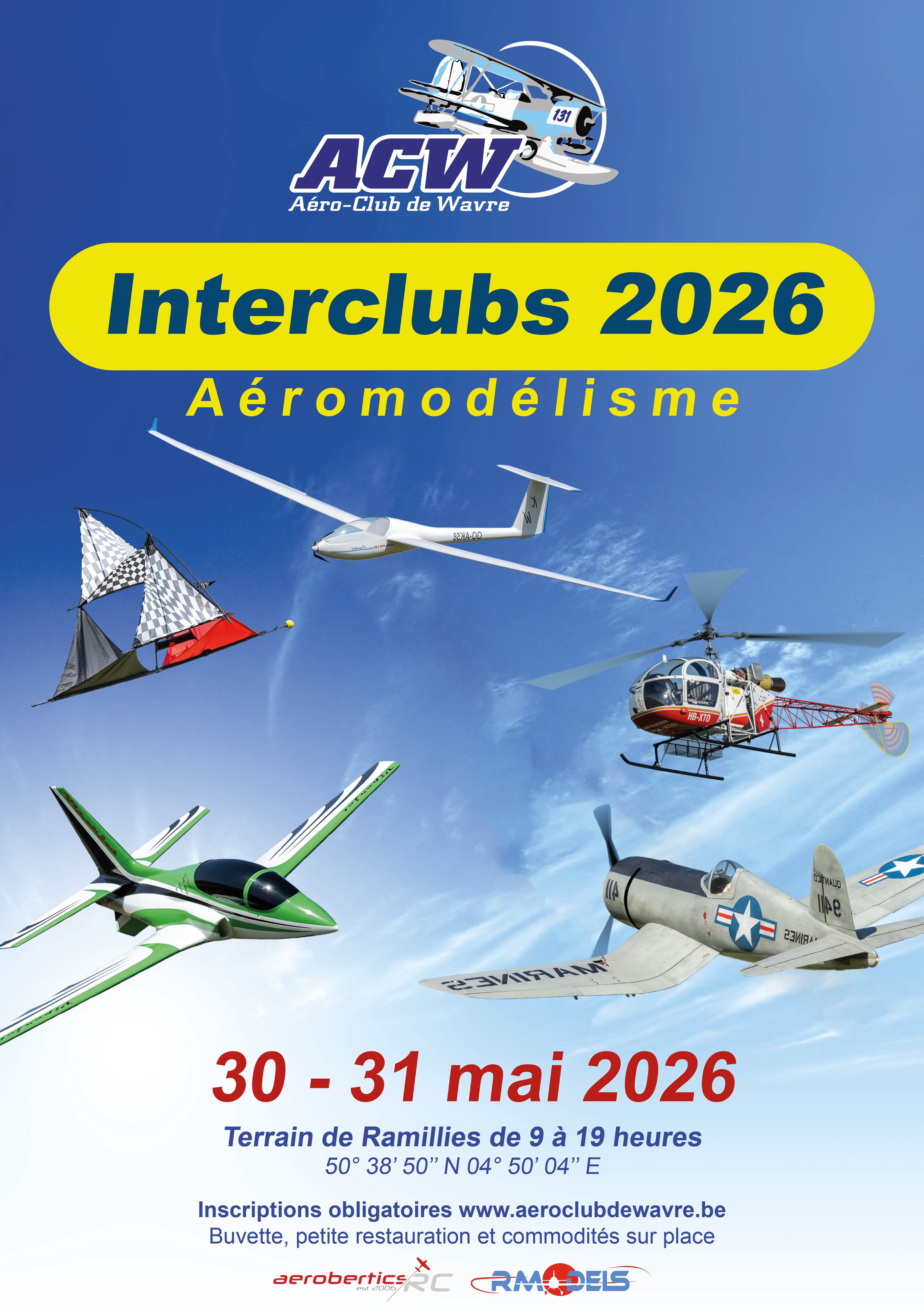 L’Aéro-Club de Wavre a le plaisir de vous inviter à son grand week-end Inter-Clubs qui se tiendra les 30 et 31 mai 2026 sur notre terrain de Ramillies. Rejoignez-nous pour deux jours placés sous le signe de la convivialité, de la passion du modélisme et du partage entre clubs !